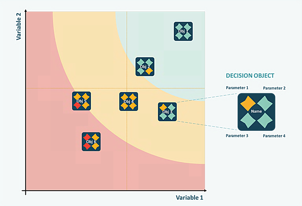 A tactical overview is only useful when it includes all decision objects competing for the same resources and attention, and when root causes and possible actions are highlighted. Otherwise, it can lead to delayed, myopic, or sub-optimal decision-making. The map provides a concise, top-down view of all relevant decision objects with clear indications of root causes and possible actions. It makes it possible to take multiple, coordinated, targeted, and simultaneous decisions. The methodology does not impose requirements for decision objects to have a specific or similar maturity level. Additionally, it does not mandate that decision objects belong to the same organizational unit, follow the same processes, or have extensive or similar sets of documentation. This flexibility enables decision-makers to include all relevant decision objects on a single map without creating an administrative overload. Furthermore, it allows decision-makers to advance critical decisions as the score map may be generated at any stage or state of the decision objects.